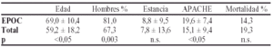 Conclusiones: El grupo EPOC presenta mayor severidad y edad media sin repercusión significativa en mortalidad cruda y estancia media. Ausencia de P. aeruginosa en la flora infectante comunitaria en nuestro entorno si bien la identificación microbiológica de este subgrupo es baja.
