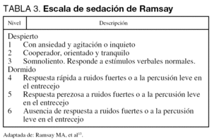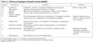 La escala de sedación de Ramsay13 (tabla 3) fue validada hace más de 30 años específicamente para valorar el nivel de sedación. Incluye sólo una categoría de agitación en su graduación, lo que la hace muy poco útil para cuantificar el nivel de agitación.