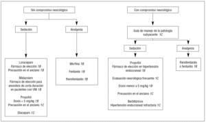 Cuando se prevea una sedación corta (menos de 24 horas) se usará propofol en bolo. Si se prevé que la sedación posterior al procedimiento será prolongada (48 horas o más) se utilizará como primera elección midazolam o loracepam.