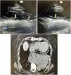 This is the case of a 78-year-old woman with a 2-h history of intense oppressive chest pain associated with sweating and poor general condition. The examination of the patient’s heartbeats reveals a visible and overt vibration at thoracic wall level. The bedside echocardiography performed in the parasternal view—both in the long (figure 1) and short axes (figure 2)—revealed the presence of extrinsic compression of the heart by a fluid-and-air-filled heart chamber (in blue color) that caused the protrusion of the heart lower side (in green color). The CCTA performed discards the presence of acute aortic disease but confirms the presence of massive hiatal hernia with complete herniation of the gastric chamber (figure 3) (Fig. 1).