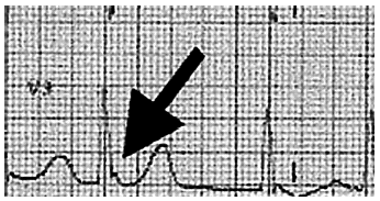 Figura 1. Trazado electrocardiográfico en el que se objetiva una deflexión positiva al final del complejo QRS que corresponde a la onda J de Osborn.