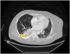 En el control radiológico (fig. 1) y tomografía axial computarizada (TAC) toraco-abdominal (figs. 2 y 3) se identifica un cuerpo extraño compatible con la prótesis, localizado en la cavidad pleural derecha con derrame pleural asociado y atelectasia compresiva sin evidencia de soluciones de continuidad en la pared esofágica. Es valorada por cirugía torácica, procediéndose a la extracción de la prótesis sin incidencias a través de minitoracotomía.
