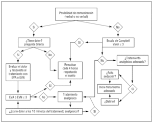 8. La escala de Campbell es la recomendada para la evaluación del dolor de los pacientes que no pueden comunicarse y debe ser incluida en las constantes rutinarias del paciente intubado. Los parámetros fisiológicos y de comportamiento son indicadores indirectos y se deben combinar con las respuestas observadas tras la administración empírica de un analgésico.