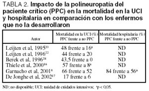 En 2003, 2 estudios han confirmado no sólo la persistencia de la afección neurológica periférica durante años, sino que este hecho es muy frecuente en pacientes críticos después del alta de la UCI.