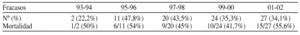 Conclusiones:1) Utilizamos la técnica con frecuencia creciente y representa un porcentaje cada vez mas alto de la asistencia a la ventilación. 2) Se usa en pacientes graves que presentan una elevada mortalidad que no parece haber disminuido en los últimos 10 años. 3) Usamos la VNI con más frecuencia en los pacientes con insuficiencia respiratoria hipercapnica. 4) En el 30-50% de las ocasiones fracasa, aunque en este caso si parece haber una tendencia decreciente a lo largo del tiempo. 5) La mortalidad en caso de que la técnica fracase es alrededor del doble de la del grupo completo y esta tendencia tampoco parece haber cambiado a lo largo del tiempo. 6) La técnica fracasa con más frecuencia cuando los pacientes son sometidos a VNI por insuficiencia respiratoria hipoxica.