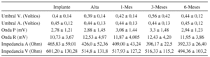 Conclusiones: La evolución de los umbrales obtenidos desde el implante a los 6 meses es inferior a 0,5 V, estable en ambas cámaras. La amplitud de las ondas P y R no varían, y las impedancias se estabilizan y bajan. Lo que seguiremos evaluando a más largo plazo.