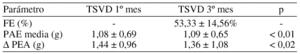 Los valores de PEA se mantienen estables durante los seguimientos, en el TSVD que relacionaremos con el apex de VD a los 6 meses