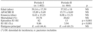 Material y método: Estudio prospectivo y continuado incluyendo todos los pacientes ingresados en UCI polivalente entre el 01/05700 y el 31/12/02. Se estudian: edad, APACHE II, estancia, mortalidad, episodios IU-SU, densidad de incidencia (DI) y microorganismos causales. En el período comprendido entre 01/05/00 y el 30/04/02 (Periodo I) se efectuaron cultivos semanales rutinarios de orina dentro del programa de control de la multirresistencia. Entre 01/05/02 y 31/12/02 (Período II) dicha práctica fue suspendida. Diagnóstico de IU-SU mediante criterios CDC. Metodología estadística: prueba de la χ2, t de Student y U de Mann Withney.