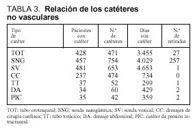 Catéteres no vasculares (tabla 3)