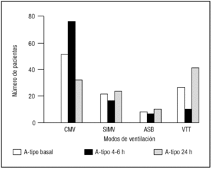 Así pues, podemos afirmar que los modos ventilatorios a las 4-6 horas postraqueotomía tienden a ser más artificiales, probablemente debido a la sedoanalgesia-relajación necesaria para la técnica. A las 24 horas se constata una mejoría significativa con respecto a los modos previos.