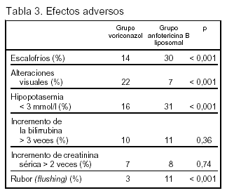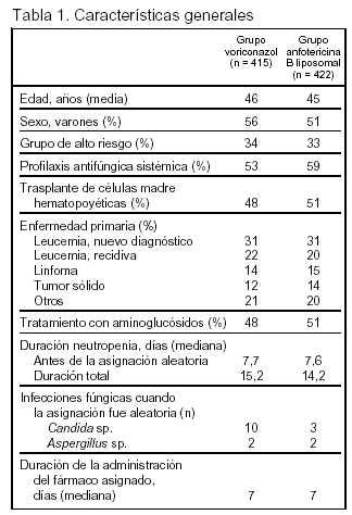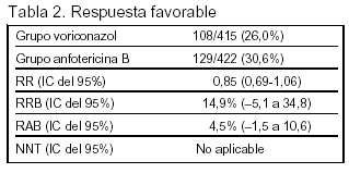 No desarrollo de una nueva infección fúngica invasora: 98,1% en el grupo voriconazol y el 95% en el grupo anfotericina B liposomal.