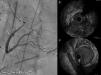 Entender el mecanismo de la isquemia coronaria en el SAA tipo A puede facilitar el tratamiento más adecuado. El propósito de este caso es describir otro posible mecanismo de isquemia coronaria en una paciente postoperada de hematoma aórtico tipo A. Se trata de una mujer de 76 años que acude a urgencias por cuadro de dolor torácico opresivo e irradiado a mandíbula y espalda, asociado a cortejo vegetativo, y con un ECG sin alteraciones. Ante la sospecha de SAA se realiza una TC torácica que muestra hematoma intramural aórtico desde el plano superior a los senos coronarios hasta el origen del tronco celíaco (fig. 1a), y una ecocardiografía transtorácica con engrosamiento de la pared de la aorta ascendente e insuficiencia aórtica leve. Se realiza cirugía urgente, con resección de aorta ascendente y colocación de una prótesis tubular supracoronaria; la ecocardiografía transesofágica intraoperatoria no muestras alteraciones en la contractilidad segmentaria. Se traslada a la UCI, en el ECG de ingreso presenta elevación persistente del segmento ST en las derivaciones II, III y aVF, y depresión de ST en las derivaciones V2 y V3, I, y aVL (fig. 1b). Se repite ecocardiografía que demuestra disfunción del ventrículo derecho e hipoquinesia de segmentos medio-basales de la cara inferoposterior. Se decide realizar coronariografía urgente, por acceso femoral, que muestra en la arteria coronaria derecha (CD) una estenosis ostial severa (fig. 2a), que no mejora con nitroglicerina intracoronaria. Se realiza ecografía intracoronaria (IVUS) que objetiva compresión severa de la luz a nivel ostial sugestiva de compresión extrínseca del vaso por hematoma aórtico (fig. 2b), resto del vaso buen calibre con escasas placas de ateroma (fig. 2c); se implanta stent convencional a ese nivel. La elevación enzimática (CPK: 1.063U/l, CKMB masa: 130ng/ml) y la evolución eléctrica fueron compatibles con IAM perioperatorio inferior (fig. 1c). La evolución fue favorable y la paciente fue dada de alta a planta el noveno día de ingreso.