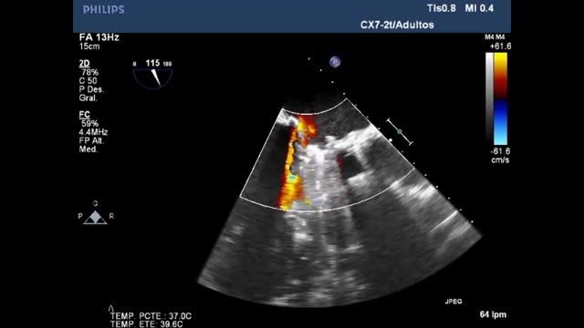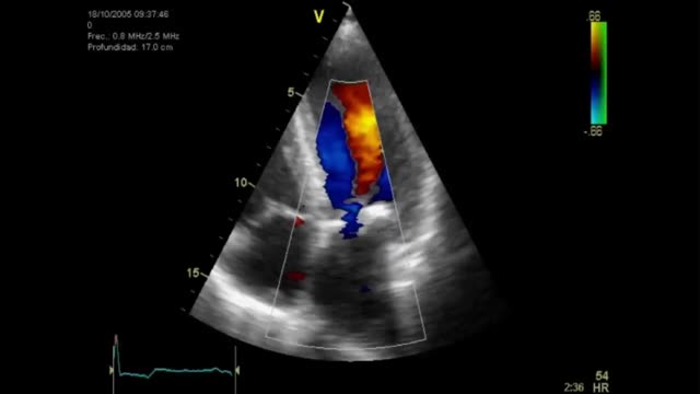 Video 4. Prótesis mecánica St. Jude n.° 19 en posición aórtica con gradientes elevados para el modelo y el tipo de prótesis.