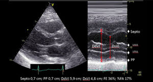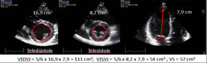 | Se trata de un parámetro subrogado de la FE (Teichholz) en la que se valora los DtTDVI y DtTSVI. Presenta las mismas limitaciones que las comentadas en la estimación de la FEVI por Teichholz. | ||