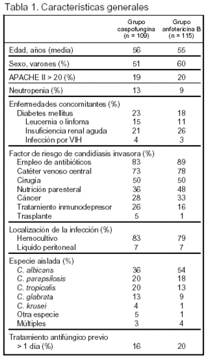 Artículo: Mora-Duarte J, Betts R, Rotstein C, Lopes Colombo A, Thompson-Moya L, Smietana J, et al, for the Caspofungin Invasive Candidiasis Study Group. Comparison of caspofungin and amphotericin B for invasive candidiasis. N Engl J Med 2002;347:2020-9