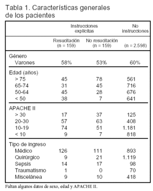 Artículo: Artículo: Cook DJ, Guyatt G, Rocker G, Sjokvist P, Weaver B, Dodek P, et al. Cardiopulmonary resuscitation directives on admission to intensive care unit: an international observational study. Lancet 2001;358:1941-5.