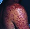 Un varón de 32años de edad, con antecedentes de fumador de unos 20cigarrillos al día y adicción a la cocaína,acude al servicio de urgencias por disnea intensa, con tos yexpectoración hemoptoica. Una semana antes habíainiciado fiebre elevada, astenia y artralgias, apareciendo a las48-72 h unas lesiones cutáneas diseminadas, decaracterísticas vesiculopustulosas en diferente estadioevolutivo (fig. 1). En la radiografía de tórax seobservó un patrón nodular intersticial bilateral(fig. 2).