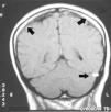 Se trata de una paciente de 58 años de edad, con antecedentes personales de hipertensión arterial, histerectomía y anexectomía bilateral, con síndrome menopáusico en tratamiento sustitutivo con raloxifeno (modulador selectivo de los receptores estrogénicos). Ingresa en nuestra Unidad por cuadro confusional de 48 horas de evolución, acompañado de trastornos del equilibrio e hiporreflexia en miembro inferior derecho. Se realiza tomografía axial computarizada (TAC) craneal de urgencia donde se aprecia hiperdensidad localizada en seno longitudinal superior (seno sagital) compatible con trombosis del mismo. Dado el anterior hallazgo, se efectúa una resonancia magnética nuclear (RMN) cerebral de urgencia, donde en imágenes potenciadas en T1, en los tres planos, se visualiza hiperseñal persistente a nivel del seno longitudinal superior, recto trasverso y sigmoideo izquierdo (fig. 1 [flechas negras]), acompañándose de edema en ambas regiones talámicas (fig. 2 [flechas negras]). Con todo ello se le diagnostica de trombosis venosa del seno longitudinal superior, recto trasverso y sigmoideo izquierdo, así como de edema bitalámico. La paciente recibió tratamiento con heparina sódica en perfusión continua, vasodilatadores para el control de la presión arterial, con mejoría clínica hasta alcanzar un GCS (Glasgow Coma Scale) de 15 puntos sin focalidad a los tres días de su ingreso. El raloxifeno fue suspendido, no recidivando el cuadro clínico.