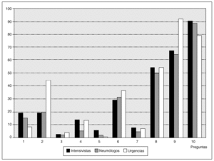 Obtuvimos alrededor de 100 respuestas por grupo y valoramos fundamentalmente la de los intensivistas, ya que en nuestro medio hospitalario, quien decide el ingreso en UCI es el médico de intensivos. A pesar de que la muestra no es representativa y las respuestas no tienen un valor estadístico significativo, sirve como "estado de opinión", con todos los límites que esto representa. Dicho en otras palabras, dependiendo de donde viva un paciente en estas circunstancias y del hospital que le corresponda y del médico de guardia que esté aquel día, ingresará y será sometido a ventilación mecánica o no.