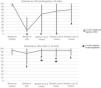 En los gráficos se muestra la evolución del estado mental medida mediante la escala de incapacidad mental de la Cruz Roja a lo largo del estudio en los 2 grupos de estudio: ingreso prolongado y corto.