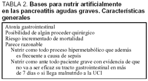 SITUACIONES METABOLICA Y CLINICA QUE CONDICIONAN LA NUTRICION ARTIFICIAL EN LAS PANCREATITIS AGUDAS GRAVES