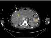 De forma paulatina la paciente va estabilizándose tanto desde el punto de vista respiratorio como del hemodinámico, permitiendo trasladarla para realizar estudio de extensión con tomografía axial computarizada (TAC), en el que se aprecian múltiples abscesos pulmonares (fig. 1), dos abscesos hepáticos e infarto esplénico (fig. 2)1; cráneo sin hallazgos.
