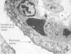 Figura 2. Imagen de microscopía electrónica correspondiente a un pulmón con síndrome de distrés respiratorio agudo. La membrana basal del alveolo está recubierta por el material resultante de la destrucción de los neumocitos tipo I y que constituyen la membrana hialina.