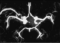 Fig. 6. Angiografía por resonancia magnética cerebral normal obtenida con técnica TOF-3D en visión frontal.